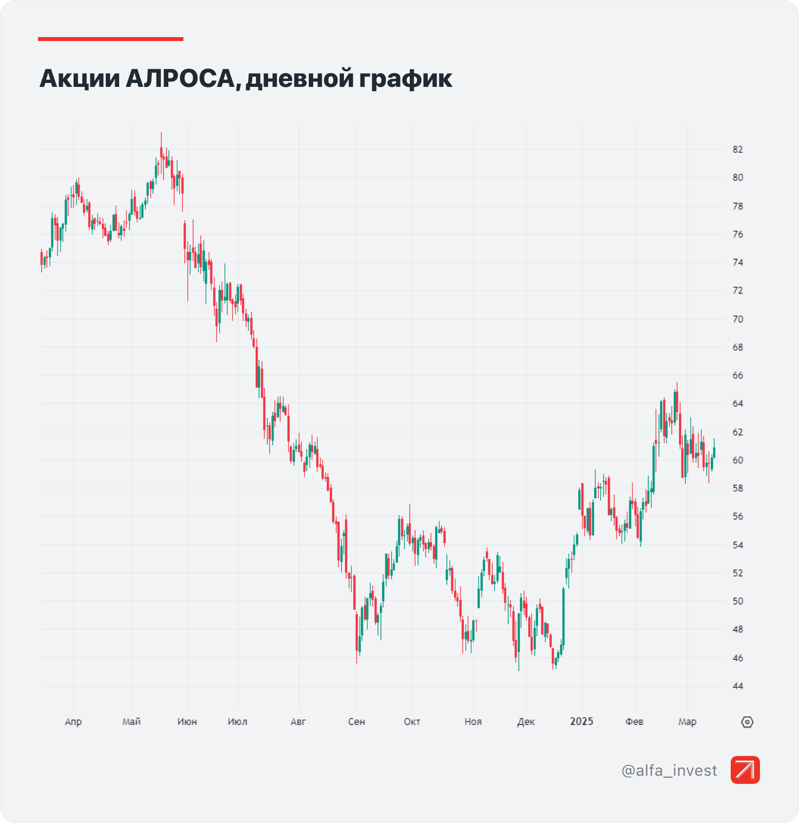 С начала 2025 года акции АЛРОСА прибавили лишь 5%, в то время как Индекс МосБиржи вырос на 12%. Разбираемся, с чем связано отставание этих бумаг от рынка, есть ли потенциал и драйверы для роста.
