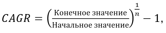 CAGR (Compound Annual Growth Rate) — это среднегодовой темп роста какого-либо показателя за период. Иначе говоря, он определяет, какая была бы годовая ставка роста на протяжении указанного времени, если бы рост был равномерным.