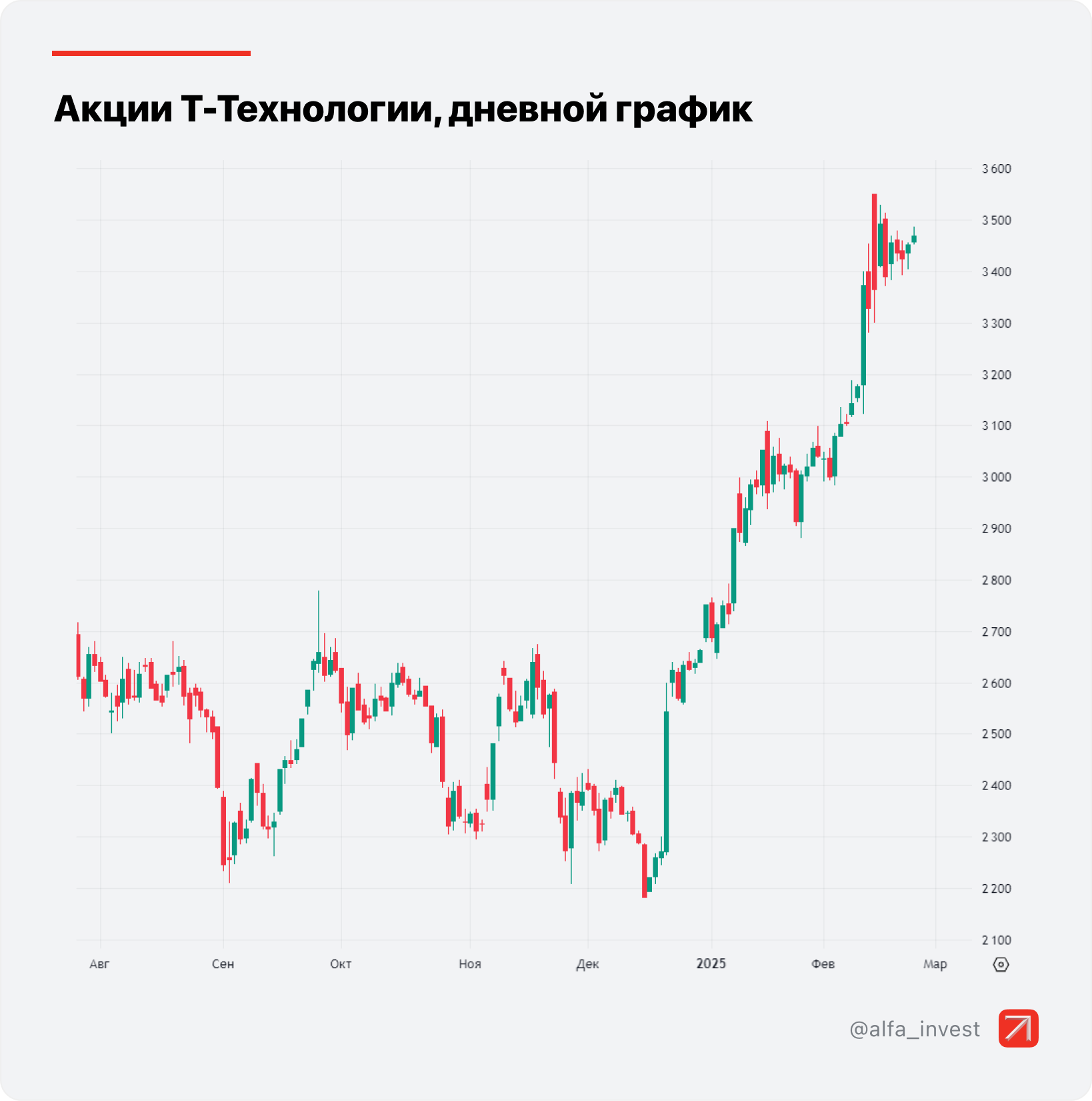 Т-Технологии являются фаворитом нашей стратегии. Компания — самый быстрорастущий и высокорентабельный игрок банковского сектора, и это ключевой драйвер её инвестиционной привлекательности. Даже несмотря на рост котировок в этом году, акции компании остаются интересными в долгосрочной перспективе. Целевая цена аналитиков Альфа-Банка по бумагам Т-Технологии — 4300 руб.