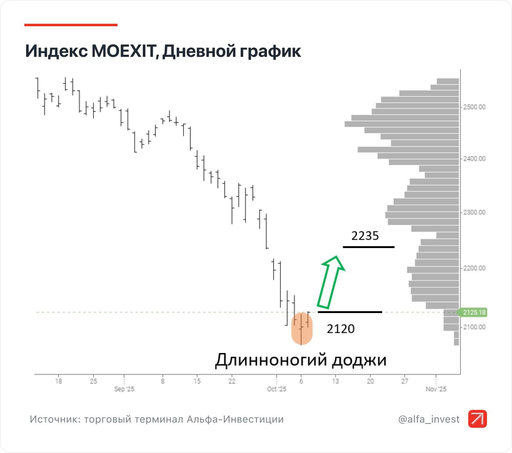 На дневном графике индекса информационных технологий MOEXIT наблюдаются интересные сигналы