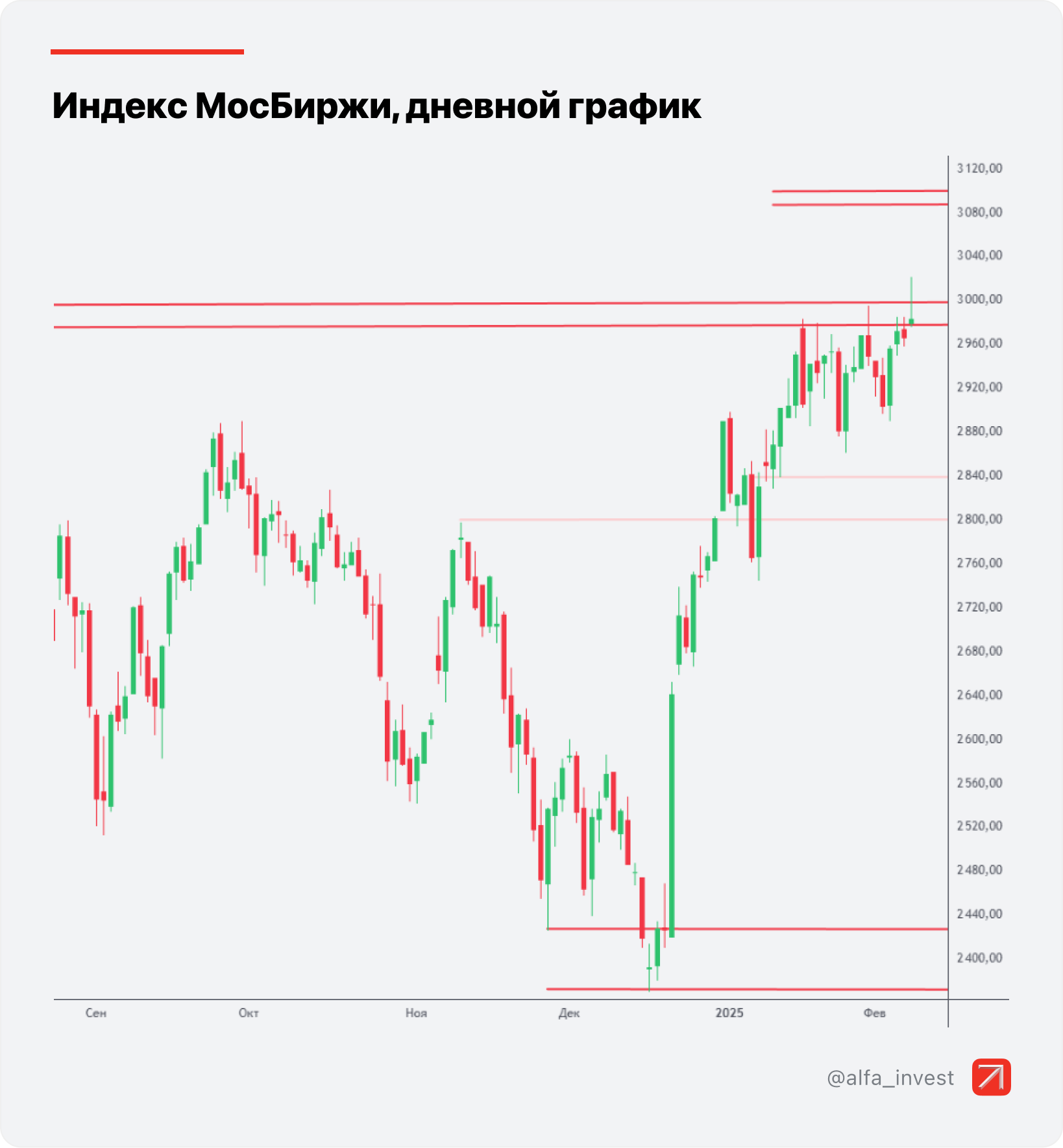 Ситуация на дневном графике Индекса МосБиржи улучшилась. Ближайшие целевые ориентиры сместились в район 3090–3100 пунктов.
