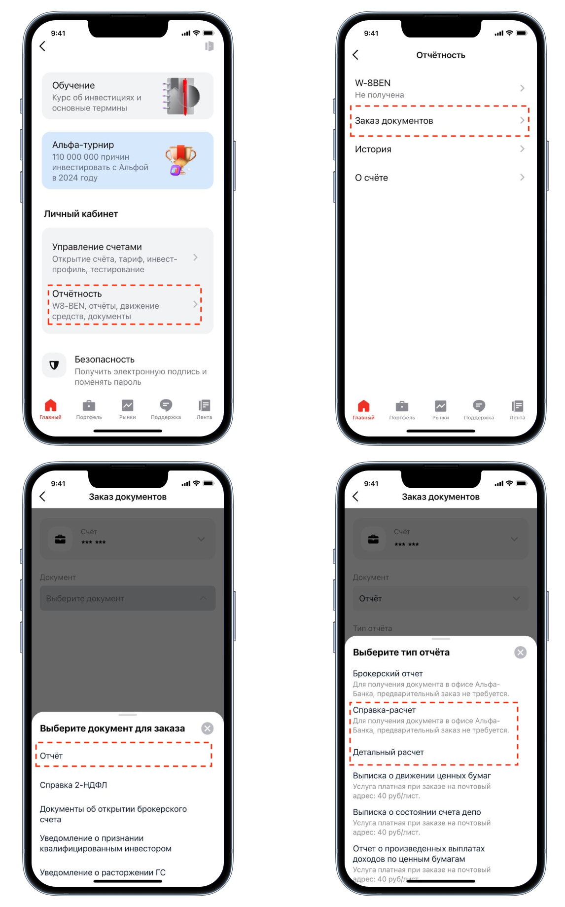 Инвесторам доступны два вида полных отчёта. В мобильном приложении Альфа-Инвестиций их можно найти так: