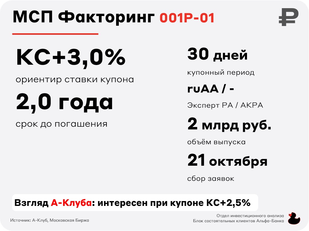 Приемлемое кредитное качество эмитента в первую очередь обусловлено его нахождением в составе группы Банка ПСБ (кредитный рейтинг – ruААА от Эксперт РА). По оценкам агентства Эксперт РА, МСП Факторинг характеризуется высокой рентабельностью бизнеса, высоким качеством активов и низким уровнем достаточности капитала.