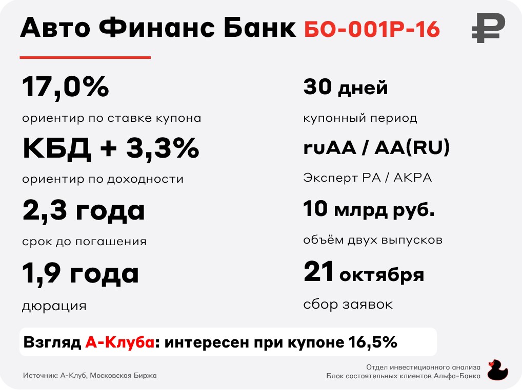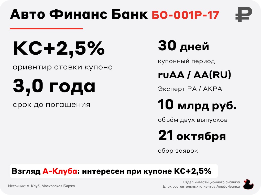 Авто Финанс Банк – российский банк, специализирующийся на выдаче автомобильных кредитов. Входит в периметр группы АвтоВАЗ. Эмитент является одним из лидеров автокредитования в банковском секторе России.